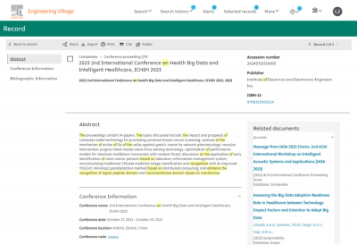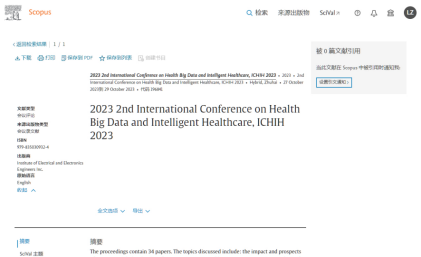 ICHIH 2023会议论文集 | ICHIH 2023 EI检索记录 | ICHIH 2023 Scopus检索记录 |