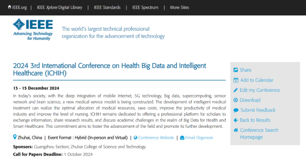 ICHIH 2024已经上线到IEEE会议列表