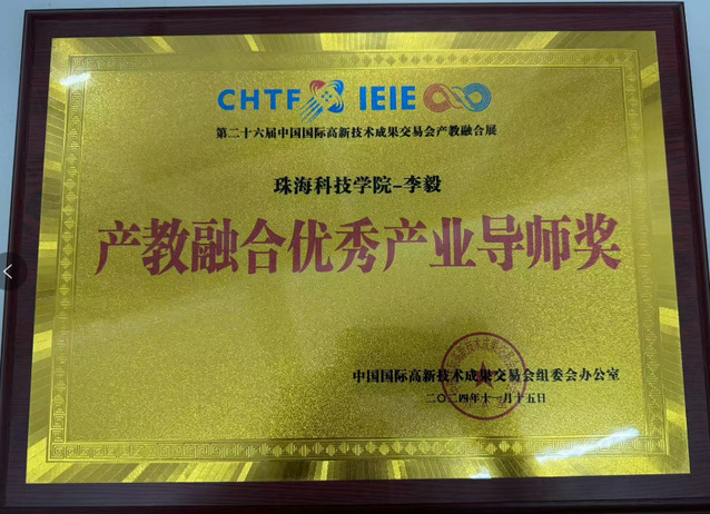 获第26届中国国际高新技术成果交易会产教融合展-产教融合优秀产业导师奖