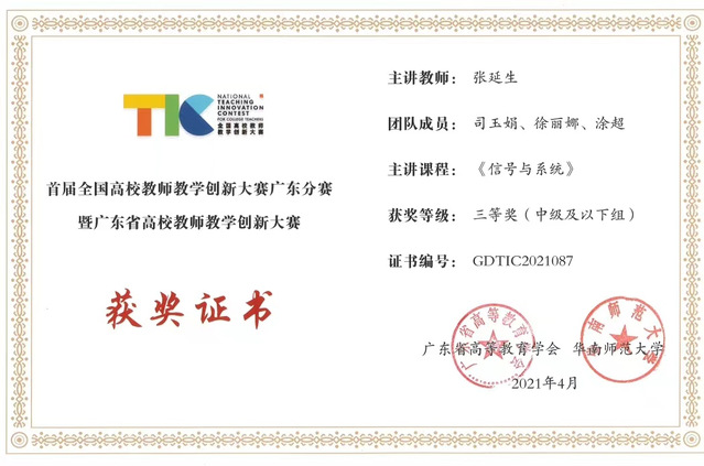 广东省第六届高校(本科)青年教师教学大赛(工科组)三等奖