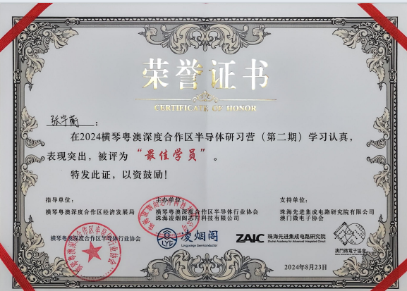 微电子科学与工程专业学生参加2024横琴粤澳深合区半导体研习营获评最佳学员奖