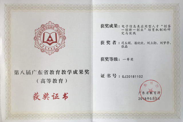 获第八届广东省教育教学成果奖(高等教育)一等奖
