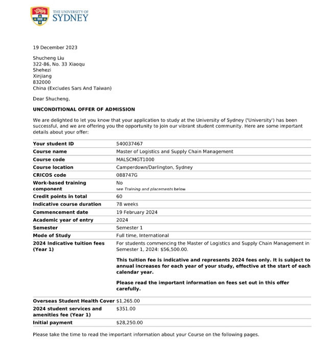 商学院2024届毕业生被悉尼大学录