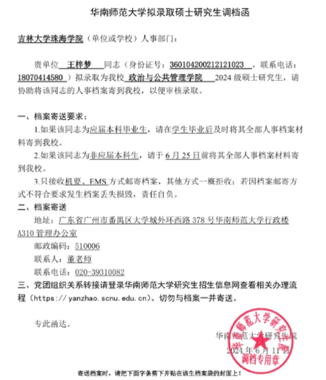 商学院2024届学生考取华南师范大学研究生