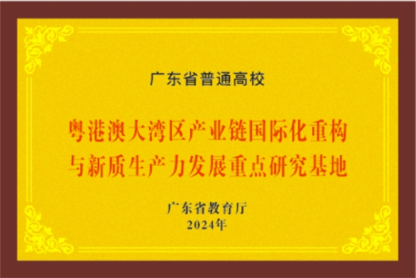 粤港澳大湾区产业链国际化重构与新质生产力发展重点研究基地
