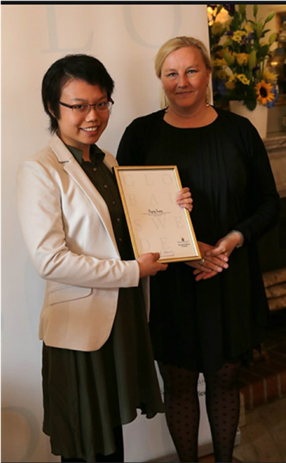 邝佩莹荣获“在瑞外国人杰出奖”与瑞典外交部部长Ewa Björling女士合影