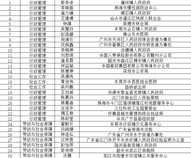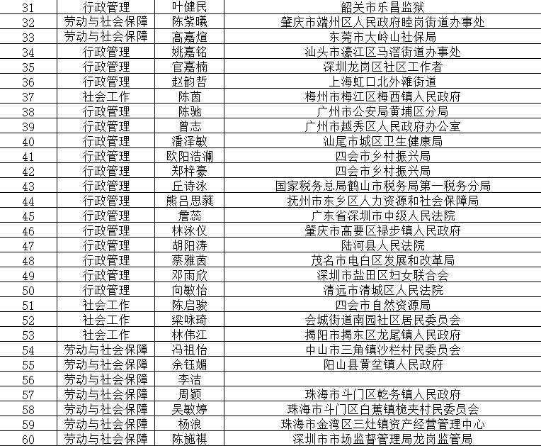 公务员录用光荣榜(部分)