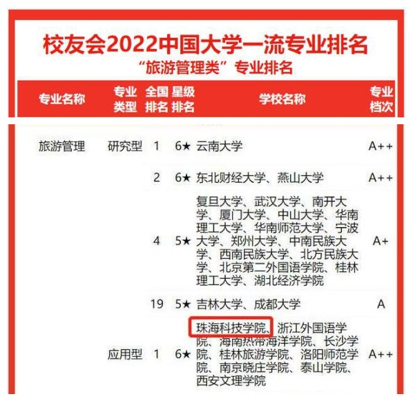 校友会2022中国大学旅游管理专业排名(应用型)首位