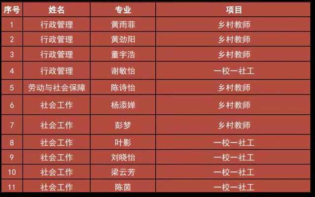 希望乡村教师计划、一校一社工项目录用光荣榜(部分)