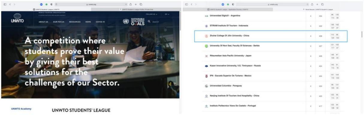 参加世界旅游组织学生联盟首届挑战赛获奖(中国区院校排名第2)