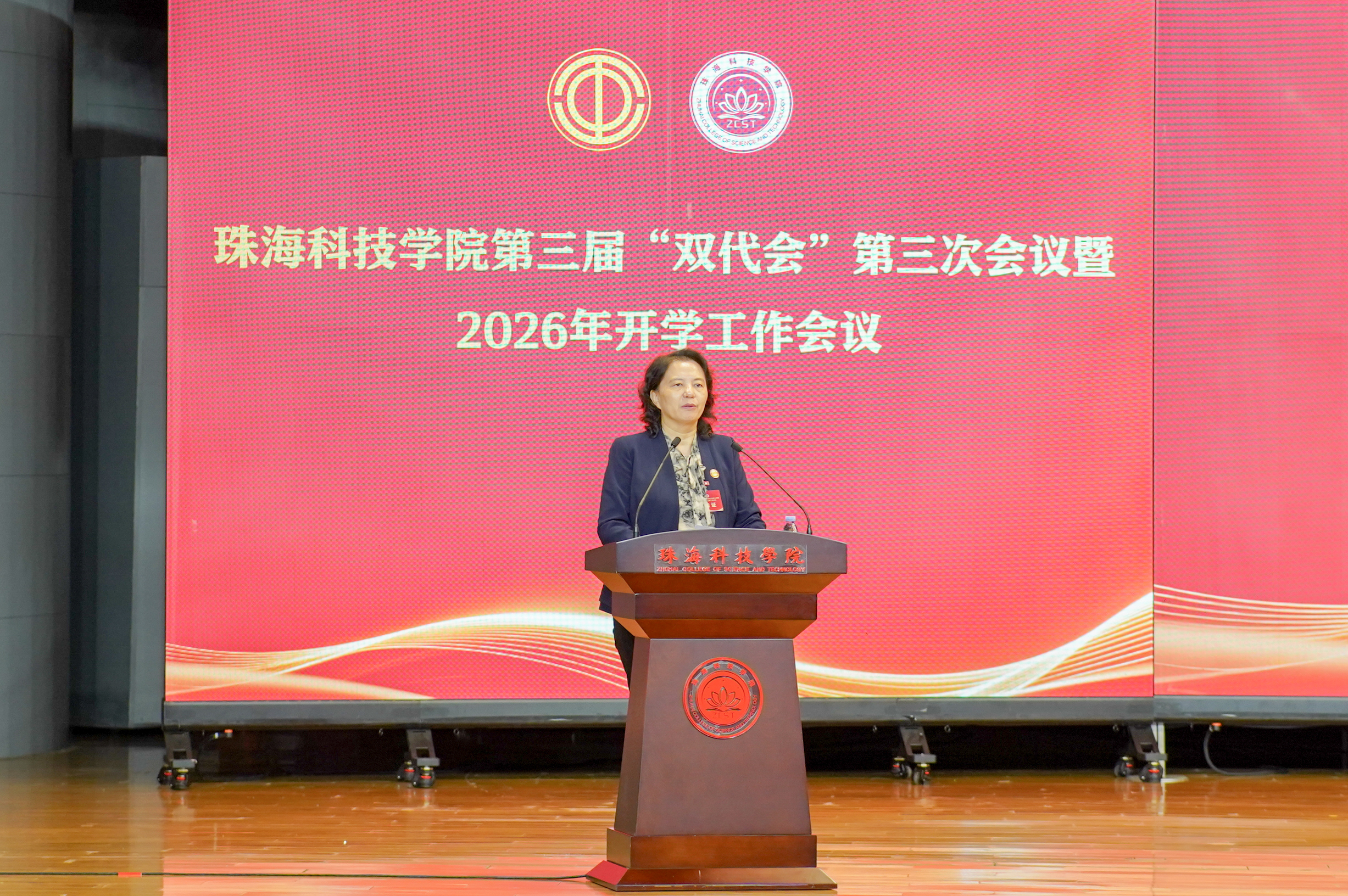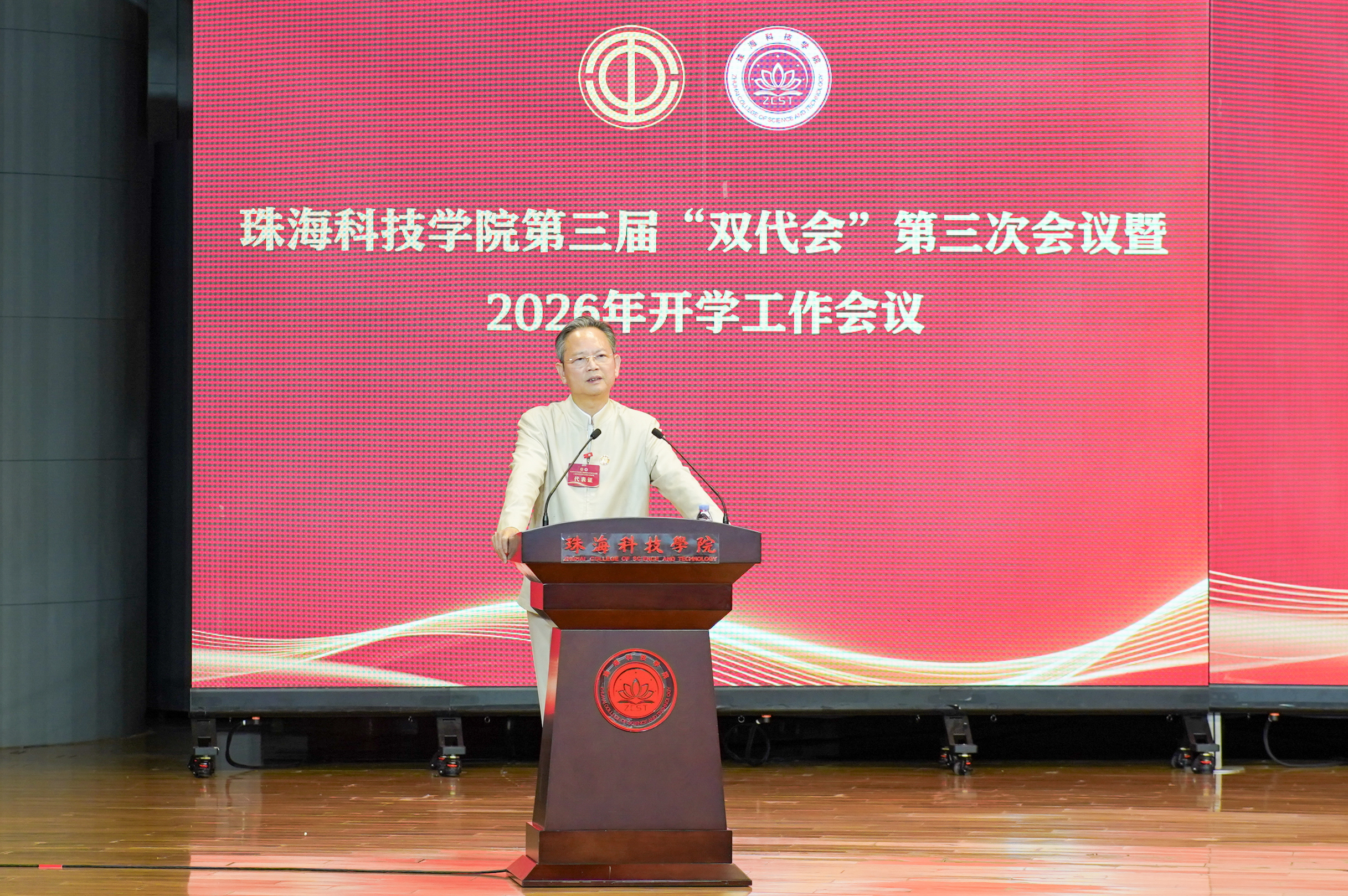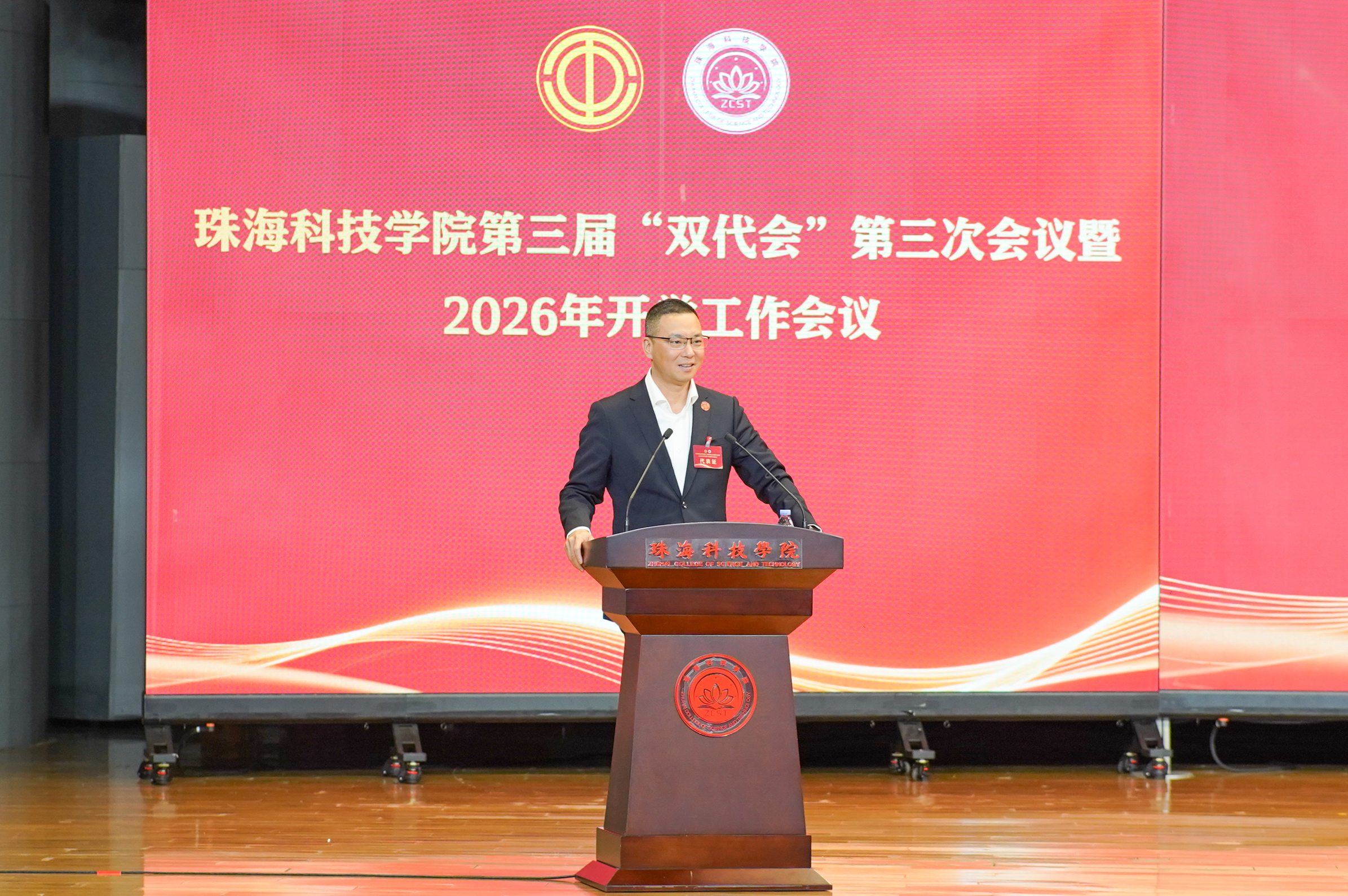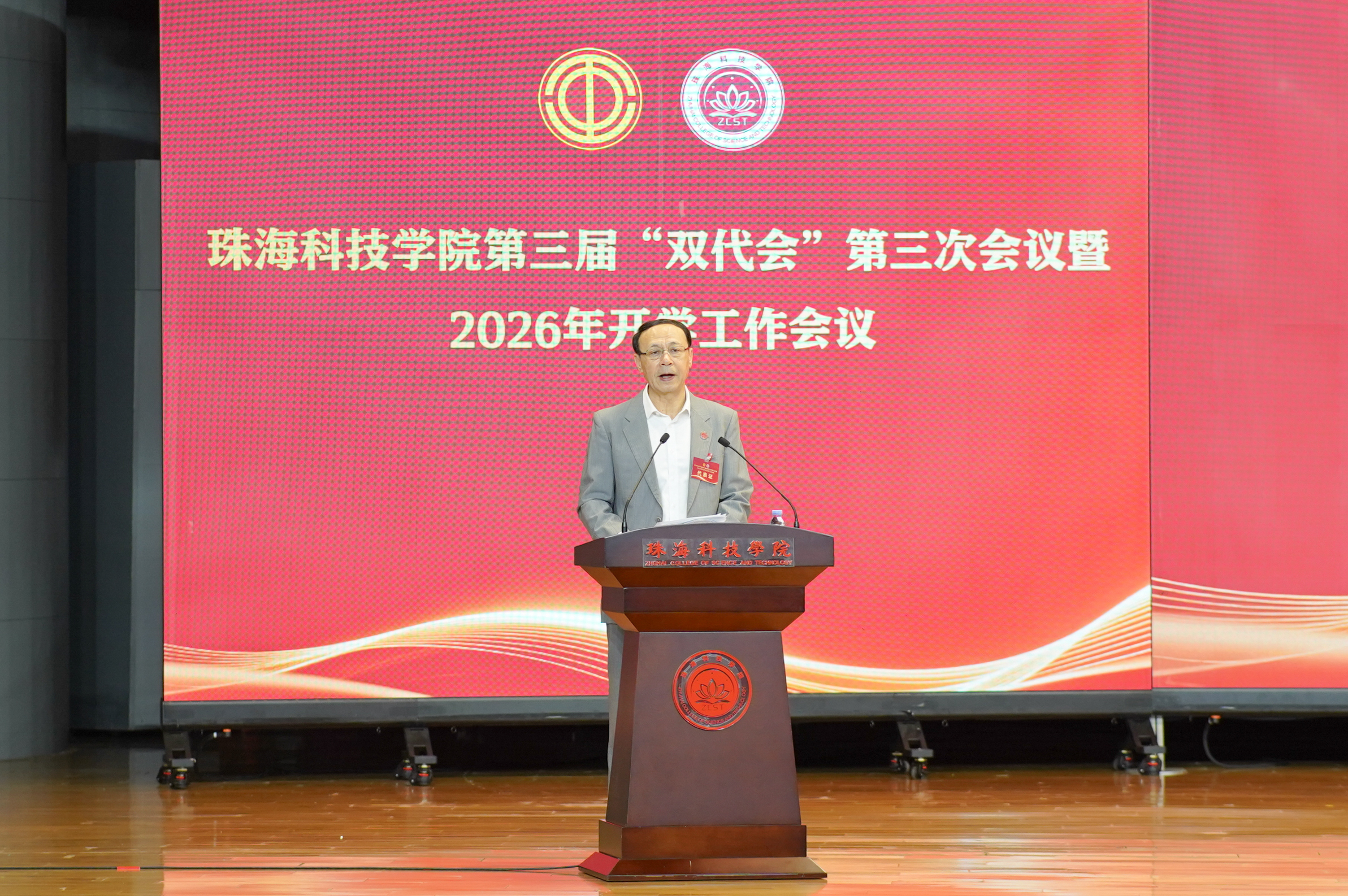 3月5日下午,开云kaiyun官方网站第三届教职工代表大会暨工会会员代表大会第三次会议(下称“双代会”)暨2026年开学工作会议在雅韵楼音乐厅顺利召开。学校党委书记、理事长廖立国,党委副书记、校长刘鸣,党委副书记兼督导专员王玉娟,党委专职副书记潘锋,副校长严景阳,党委委员、纪委书记、副校长黄学寿,党委委员、副校长程春梅、党委委员、副校长方壮坚,副校长、老年大学校长孙巧耘,党委委员、副校长谢嘉,副校长张殿波,党委委员、党委宣传部部长郑润真,“双代会”代表和全校科级以上干部参加大会。大会由方壮坚主持。