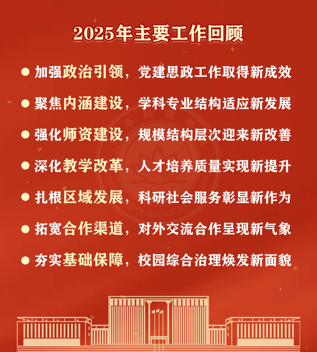 廖立国指出,今年是中国共产党成立105周年,是“十五五”开局之年,也是学校迎接教育部本科教学工作合格评估的关键之年。他强调,要深入学习贯彻习近平总书记关于树立和践行正确政绩观的重要论述,认真落实全省高质量发展大会精神,更加深刻领悟“两个确立”的决定性意义,增强“四个意识”、坚定“四个自信”、做到“两个维护”。他结合上级工作部署,对新学期工作提出三点要求。