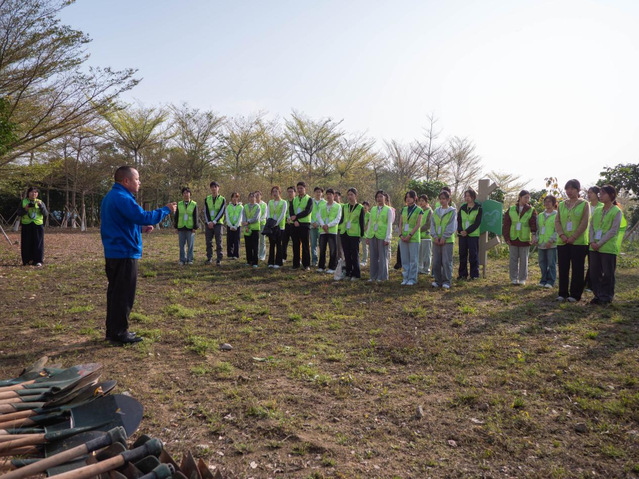 活动伊始,校团委专职团干婷婷立足实践育人视角,阐述了“青年林”建设的深层意涵。她介绍道,“青年林”于2024年3月落成,是学校积极响应“绿美广东”生态建设号召、动员广大师生共建共享的绿色实践成果。如今这片由师生亲手栽种的225株树苗不仅成为校园里的一道生态风景线,更成为集劳动教育、志愿服务与生态文明理念培育于一体的实践育人重要阵地。她鼓励同学们以此次实践活动为契机,在护绿养护中感悟劳动价值,将绿色理念内化于心、外化于行。