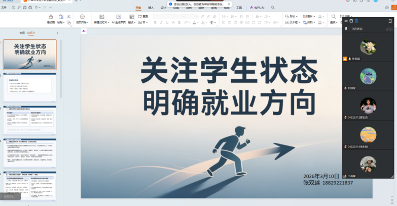 除了针对性线上指导,学院还在各班级线上班会中明确了毕业与就业的各项工作部署,向毕业生详细讲解毕业离校、档案转接、就业报到证办理、三方协议签署等流程及注意事项,提醒毕业生密切关注学院线上通知,避免遗漏关键环节。后续,学院还将持续推进落实展翅计划的各项线上线下帮扶举措,通过线上定期推送就业信息、举办线上企业宣讲会、开展一对一线上求职指导等方式,持续跟进毕业生的学业与就业进展,为每位学子提供全流程、常态化的支持,确保毕业生平稳完成从校园到社会的过渡。