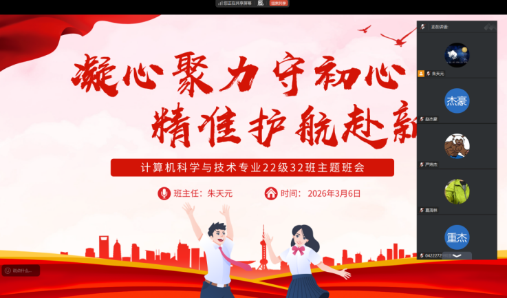 为切实做好毕业生学业指导与就业帮扶工作,缓解毕业生毕业焦虑、就业迷茫等问题,助力毕业生顺利完成学业、精准对接就业,计算机学院特开展“稳就业、精论文、促实习”展翅计划毕业生专题活动。本次活动以各班级线上主题班会为核心载体,针对毕业生最关心的学业进度、就业形势、心理状态等关键问题展开深度交流与指导,立足计算机专业行业特色,贴合毕业生线上沟通的实际需求。