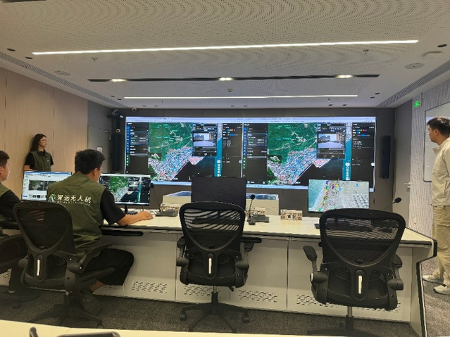此外,学院一行还参观了位于盐田区低空经济产业服务中心的低空融合飞行指挥中心,进一步了解盐田区低空经济基础设施和产业服务平台建设情况。盐田区低空融合飞行指挥中心暨低空经济产业服务中心于2025年10月启用,标志着当地低空经济发展迈入规范化、系统化新阶段,逐步形成“指挥调度+产业服务”的双重支撑体系。其间,低空融合飞行指挥中心集运营、调度、会议讨论、大屏监控管理和空域三维态势展示等功能于一体,着力打造全域感知、高效调度、精准决策的智慧指挥中枢;低空经济产业服务中心则兼具产业服务和产学研协同功能,为校企合作、成果转化和人才培养搭建了重要平台。
