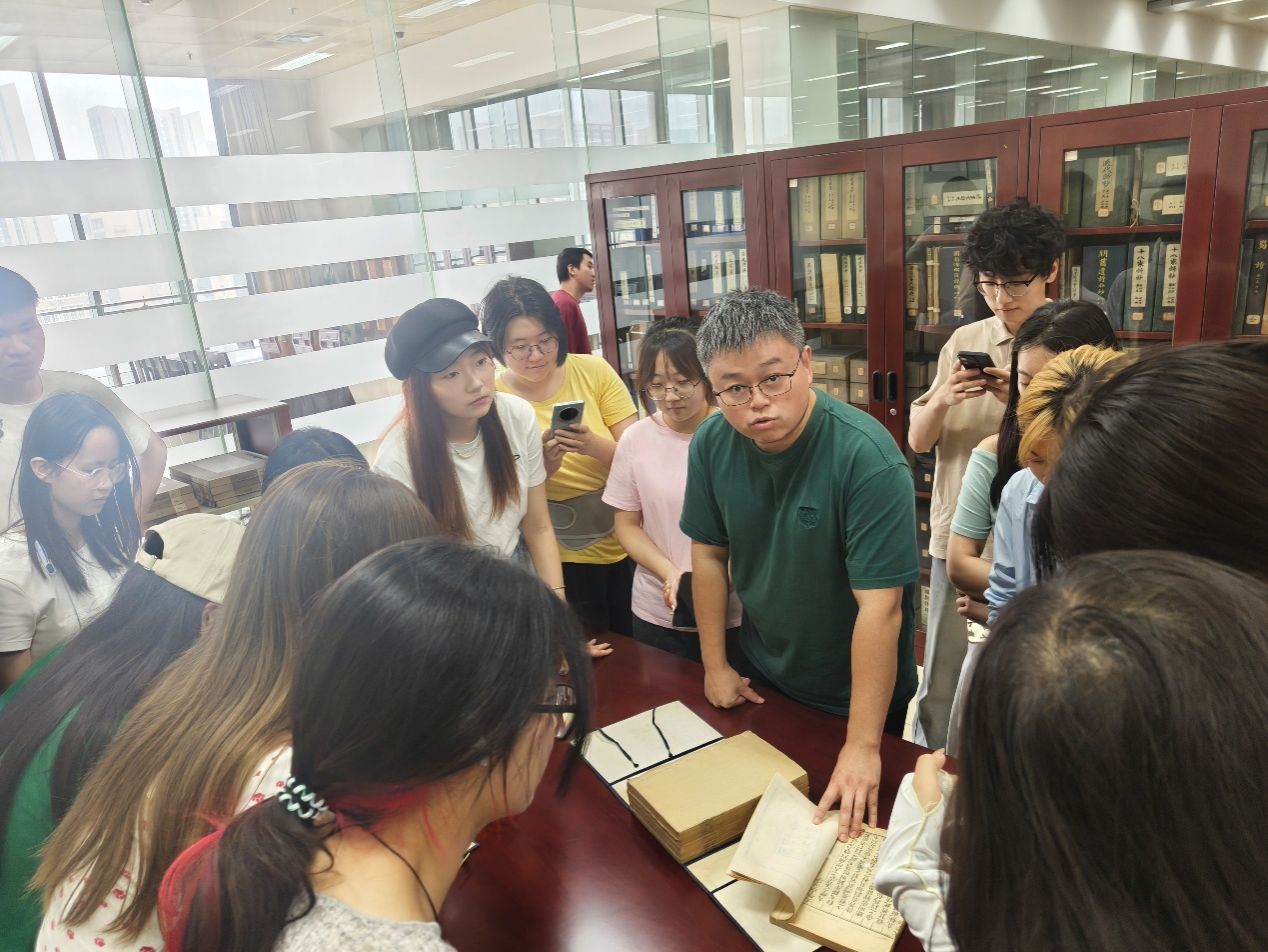 作为全国古籍重点保护单位,陕师大图书馆珍藏古籍线装书25万余册,其中9000余册珍贵善本。在古籍特藏部,陕师大王昊聪老师对古籍的分类、编目与保存方法进行细致讲解,并以清代刊刻《四书章句集注》为例,生动讲解古籍整理与中国哲学研究的密切关系。当同学们亲手触摸泛黄的书页,儒家经典不再停留于文本,其承载的千年思想脉络变得真切可感。