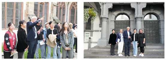 交流会结束后,帕德博恩前市长和孔子学院负责人热情地带领师生实地探访了帕德博恩城市,了解帕德博恩城市的历史。古老的建筑、雄伟的教堂,将同学们带入了一个扑面而来的历史画卷,不仅让团队每位成员更深刻地体验多元文化,开阔国际视野,而且帮助大家更好地聚焦中德两国文化融通、价值传播的理念与做法,探索讲好中国故事、让世界听到中国声音的多元途径。