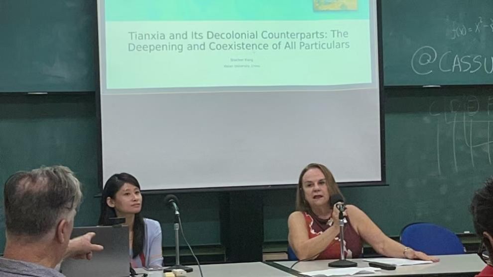 大会首先以中国社会科学院赵汀阳教授的报告“天下的当代性:世界秩序的实践与想象”开启了第一段议程。他认为应该从中国古典哲学的概念参照出发,与现代性的关键问题展开对话,在不忽视西方哲学的情况下,以自己的历史哲学为参考去探讨政治、伦理、科技、逻辑和身份问题的原初可能性。项舒晨教授对这一主题给予了回应,指出天下体系的成功不能仅仅诉诸于人们的理性,并作了题为 “天下及其去殖民化的对应物:万殊的深化与共存(Tianxia and Its Decolonial Counterparts: The Deepening and Coexistence of All Particulars)”的主题报告。她提出,中国的世界主义不同于主流的自由多元文化主义(liberal multiculturalism)范式,它对于不同文化的发展不仅停留在包容层面,也即仅仅允许不同文化存在而已,而是应该使不同的文化在交流和碰撞中互相学习、相互互补、融合、进而达到共识。