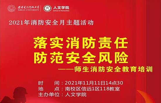 (通讯员 霍逸凡 傅嘉明)为防患于未然,进一步普及消防安全知识,提高师生们的消防安全意识与逃生自救能力,在第30个全国消防日到来之际,KY开元集团官网入口落实2021年消防安全月主题活动,于11月11日下午14:30开展了以“落实消防责任 防范安全风险”为主题的师生消防安全教育培训。本次专题培训活动于信远Ⅰ区118教室开展,KY开元集团官网入口师生到场参加了本次培训。