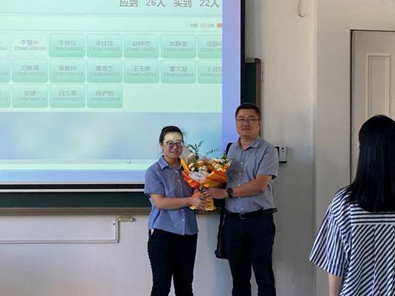 10日上午,学院全体领导和办公室人员分组来到教室,在课前为每一位上课老师献上一束鲜花,表示敬意,送上诚挚的祝福,并和学生一起向老师鞠躬致意,表达深切的感谢之情。