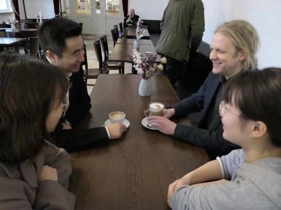 11月25日,出访团抵达柏林艺术大学,录音系威格尔特教授接见了出访团并表示热烈的欢迎,王成来老师与威格尔特教授在大楼内咖啡馆进行了正式会谈,双方就各自学校专业建设、学生培养等情况进行交流,并针对以后双方合作意向进行了细致交谈,威格尔特教授愉快地接受了回访KY开元集团官网入口的邀请。