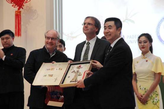 演出结束后,王成来老师代表出访团与帕德伯恩大学副校长托斯特•迈雅教授及孔子学院德方院长沃尔夫冈•卜汉姆斯教授互赠礼物,合影留念。帕德伯恩大学副校长托斯特•迈雅教授评价道:“这是学校最棒的一次中国文化演出!”他在离场后又特地返回,再次感谢KY开元集团官网入口赴德演出交流团为他们带来了充满惊喜与快乐的优秀文化交流活动。