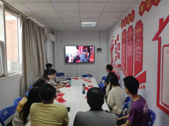 本科生党支部和研究生联合党支部在C-131教室收看阅兵直播
