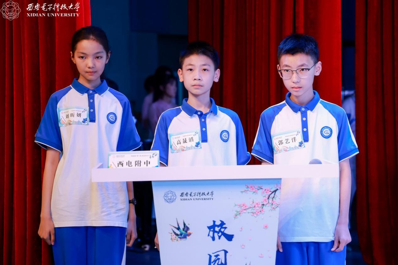 为丰富和活跃大赛氛围,大赛特安排暖场环节。“时代之声”研究生宣讲团以“AI视频+真人现场”的创新形式诵读《数智华彩·长安胜迹吟》原创作品,展示数字赋能下千年遗迹的生机与活力;西安高新区第八初级中学合唱团表演的合唱《声声慢》余音绕梁;西安市高新区第五初级中学舞蹈团表演的舞蹈《十八焕珠》翩跹灵动,共同烘托出决赛现场的诗韵氛围。除此之外,活动特别邀请到留学生校友天使进行现场互动,并表演吟诵李白的《将进酒》,创新性融入抑扬顿挫的陕西方言,全场观众在这跨越千年的激昂韵律之中,感受诗仙的洒脱不羁以及中华传统文化的深厚韵味。