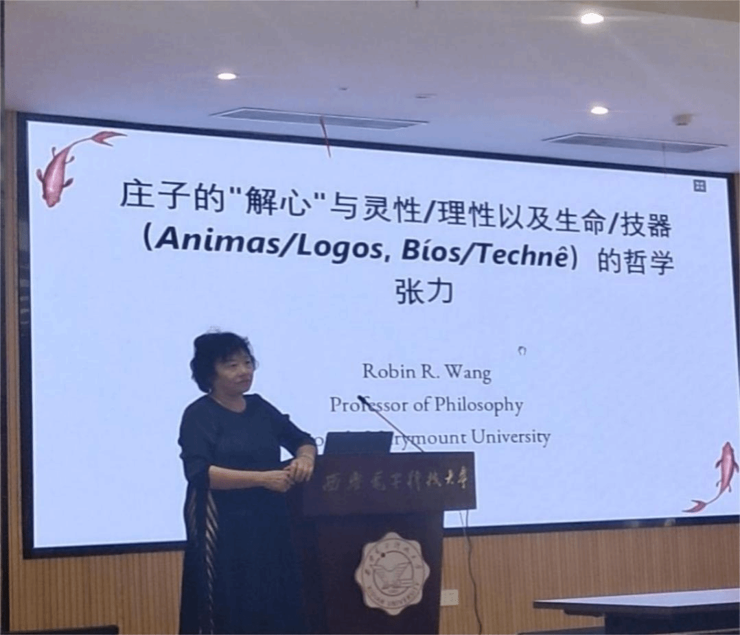 由此出发,王教授主张“解”字蕴含的哲学意义,需通过与西方哲学传统对照方能充分彰显。她论证道:西方传统中始终存在着“生命体”(animas)与“理性"(logos)的二元对立——前者属于生物学领域,后者关联心智(nous)。通过这些文本例证,王教授得出结论:在庄子看来,人可以通过观察动物体悟天道。为阐释庄子“向动物学习”的当代意义,王教授列举了仿生学(biomimicry)案例:高铁的流体力学设计源于对飞鸟形态的模仿。这类自然启示表明,《庄子》所推崇的人与自然关系,正是通过互动自发显现意义的关联性相遇。