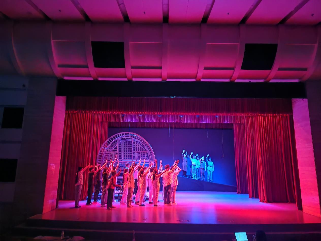 推进会召开前,与会人员观摩了话剧《从延安走来》在大学生活动中心小剧场的排练。尽管受限于现场舞美道具及灯光音响条件,剧组仍竭尽全力展现了作品的独特形式。剧目聚焦“延思英抵达延安”“兴办教育”等关键场景,采用无序场次叙事,巧妙融合上海、西安、延安等多地时空。其中,默剧形式呈现的“四渡赤水”“到达瓦窑堡”等宏大场面,通过极具张力的肢体语言,强化了视觉冲击力。