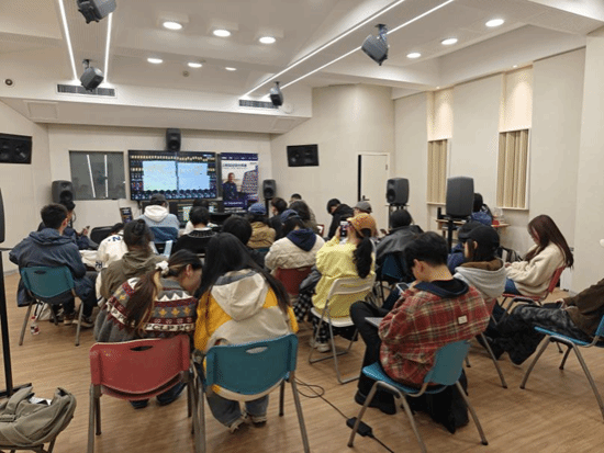 在探讨“人声与立体声素材处理”时,Bob指出,人声应保留70%以上的单声道核心以保证清晰度,并运用数字混响增强空间感;立体声鼓组则需拆分底鼓与军鼓并分别定位,以避免声部重叠。在阐释“情感与空间表达”理念时,他以《你可以的》为例,说明通过将人声定位于中心、吉他与环境音分别布置于侧方与后方,可营造出沉浸式的听觉体验,并强调“空间是情感的载体,而非装饰”。同学们紧跟直播演示,认真记录各项关键技术要点。