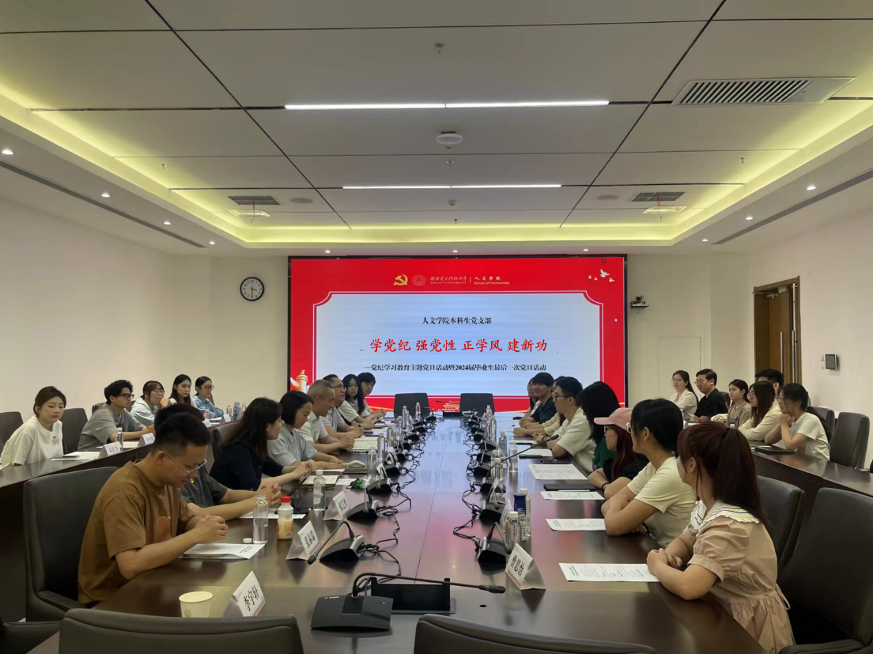 活动现场,毕业生党员代表2020级哲学专业宫懿伦、汉语言文学专业王艺乔,和2021级哲学专业涂凯旋、汉语言文学专业周若男,2022级录音艺术专业付琳清分别围绕“学党纪 强党性 正学风 建新功”主题,结合党纪学习教育、学风建设以及职业发展等方面,分享了党纪学习教育学习体会,学生党员唐珂、蒋天翔朗诵了作品《廉洁颂》。