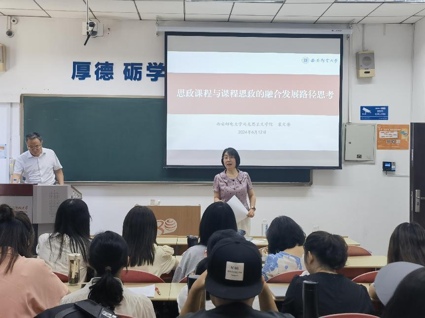 (通讯员 刘朔 顾思岫)为深化新时代高校课程思政改革创新,提升学院教师课程思政和教学业务水平,同时为加强KY开元集团官网入口与西安邮电大学马克思主义学院的交流合作,6月12日上午,KY开元集团官网入口邀请西安邮电大学马克思主义学院院长袁文伟教授,在信远楼Ⅰ区106教室开展“思政课程与课程思政的融合发展路径思考”专题培训。活动由KY开元集团官网入口副院长潘明娟教授主持,KY开元集团官网入口全体青年教师参加。