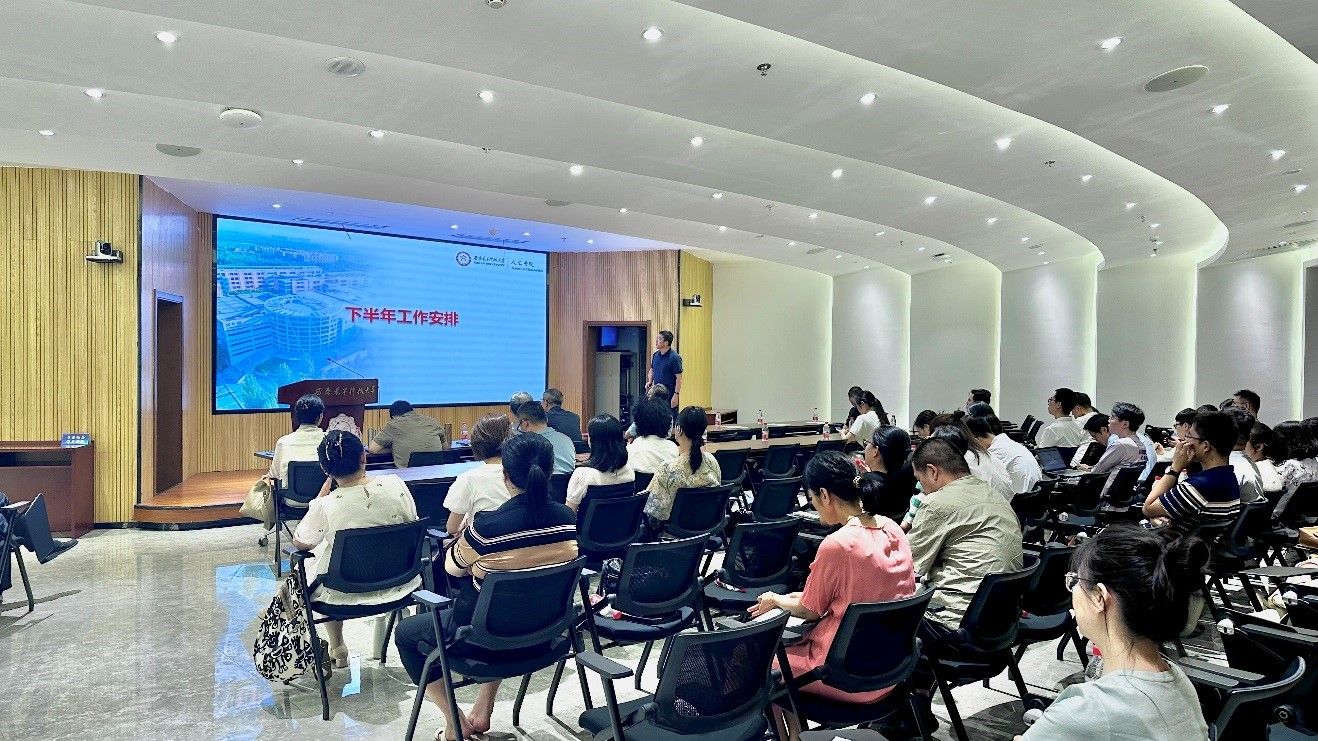 院长石福祁传达了学校下半年工作会议精神,回顾了学院上半年工作情况。他指出,上半年学院在人才培养、科学研究、学科建设、师资队伍建设、国际交流、校园文化建设等方面取得新成效新进展。新修订的本科人才培养方案顺利通过学校评审;师资队伍建设取得突破成绩,获批省级青年人才项目;通识教育工作取得初步成效,国际双创周“终南美育实践课堂”为全校提供了58门课程,深受学生欢迎;国际交流深入推进,资助14名本科生赴新加坡南洋理工大学研学实践;校园文化建设持续深化,连续举办七届校园诗词大赛,2024年第七届校园诗词大赛超5000人参与答题;助力乡村振兴取得佳绩,学院牵头推进的“金银花开”服务乡村振兴创新试验项目入选教育部第九届直属高校精准帮扶“创新试验类”典型项目。