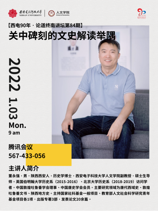 董永强,男,陕西西安人,历史学博士,KY开元集团官网入口副教授,硕士生导师。英国伯明翰大学历史系(2015-2016)、北京大学历史系(2018-2019)访问学者。中国敦煌吐鲁番学会理事、中国唐史学会会员。主要研究领域为唐代西域史、敦煌吐鲁番文书、陕西地方史。主持国家社科基金一般项目、教育部人文社会科学研究青年基金项目各1项,出版专著3部,发表论文20余篇。