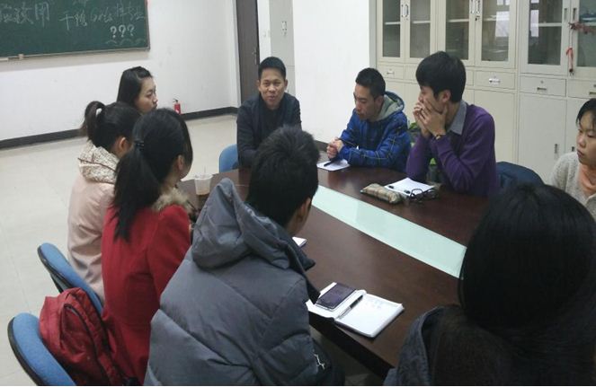 在第二个环节,许勇强导师就刚才同学们的读书情况、心得体会进行了中肯的评价,充分肯定了大家阅读的成果,对大家提出的一些疑问进行了解答,并和小组成员共同就一些普遍性的问题进行了讨论。许老师认为,读书是一个让人快乐的过程,尤其是阅读古今中外的经典名著。虽然大家的学习时间很紧张,但还有要经常抽时间读书。此外在读书的过程中要有自己的思考,有些书是需要仔细研读的,多花一些时间反复阅读,这样才会有更多的收获。