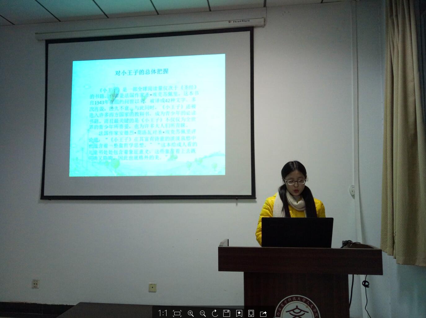 一部童话何以能对世人产生这么大的影响力?李雨晴在本次思享会开始之前为我们提出这个问题。随后,李雨晴同学为我们解答了这个疑惑。小王子,不仅仅是一本给小孩子看的童话,更是一本写给大人的童话。法国作家安德烈•莫洛瓦对圣•埃克苏佩里评论道:“《小王子》在其富有诗意的淡淡哀愁中也蕴含着一整套哲学思想。”它并不是一本普通的童话,它能给我们许许多多感悟,有人生的,有现实的,这些赋予它的评价也都很高。