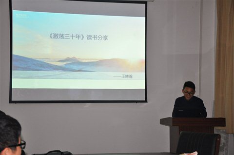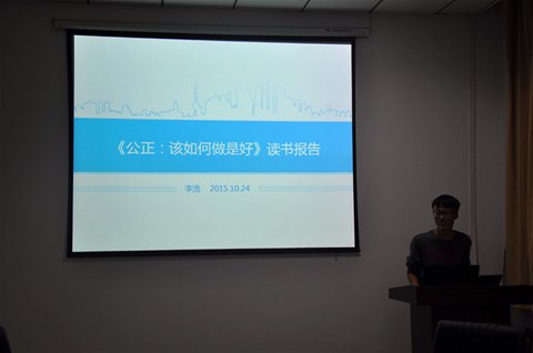 王博瀚同学首先介绍了《激荡三十年》一书,为组员讲解了他最欣赏的作者——吴晓波的故事,概述了改革开放以来人民群众在历史创造中的激情、喜悦、呐喊、痛苦,使组员感受到那个时期中国企业界的脉动。张家铭同学介绍了《洞穴奇案》,反映了20世纪各个流派的法哲学思想,犹如一桌法哲学盛宴,让我们得以品味精彩动人的深邃思辨,培养适应法治社会的法律素养。王宗友同学的“品位浪潮之巅”这一精彩分享让我们更真实地了解当代美国及其科技产业,并以此对科技创新和商业公平在美国文化生活中的深刻意义有了更深刻的认识。彭泓森同学分享他对《人间词话》的感悟,并让我们畅游在或是华丽或是恢弘的诗词意境中。李浩同学的分享《公正:该如何做是好》概述了桑德尔的哲学思想,让我们从更深层次看待公正并引发思考。