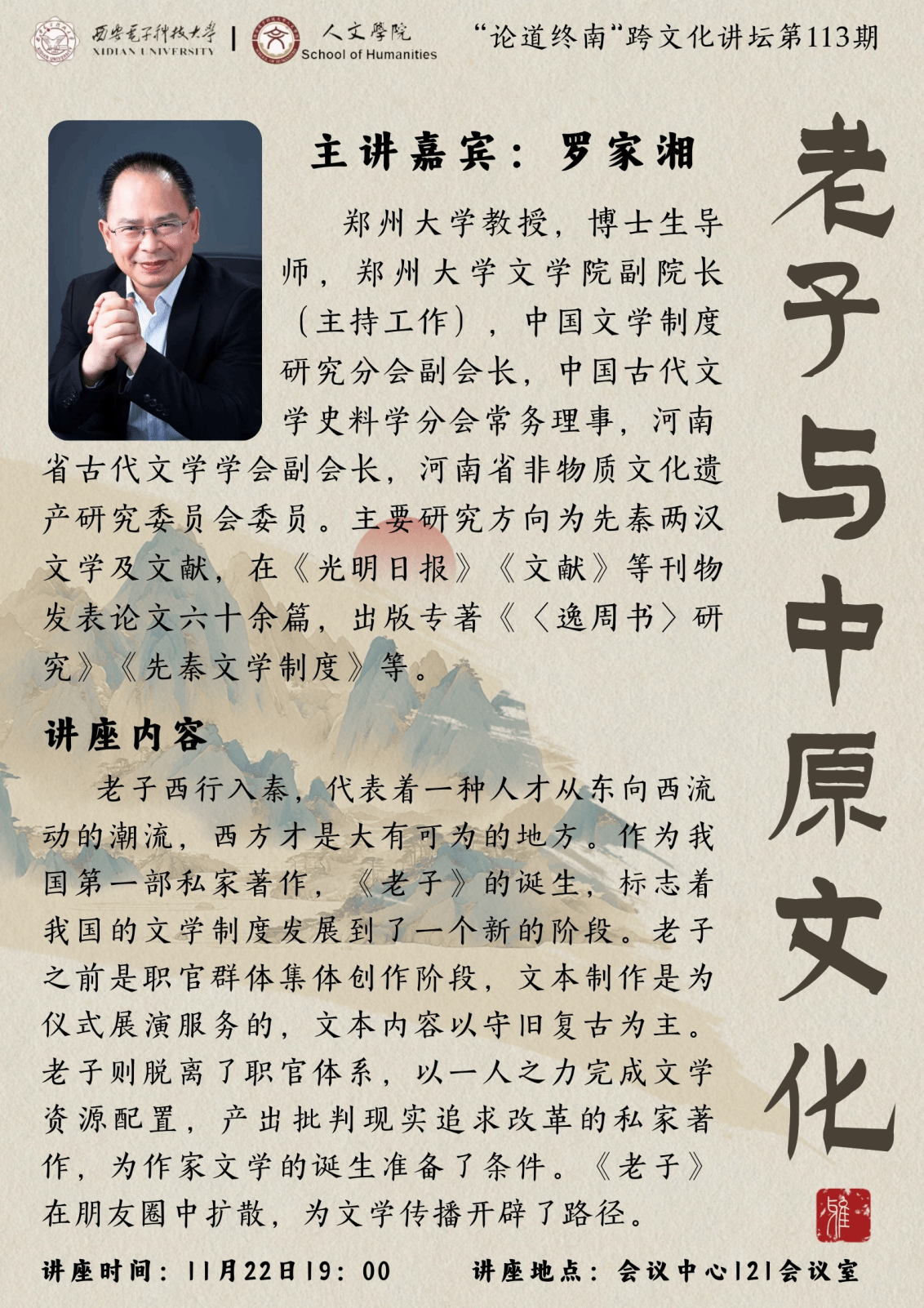 下一篇:讲座预告| 鹿鸣文化讲坛系列讲座第六期——王淑梅:汉代礼乐文化与乐府文学