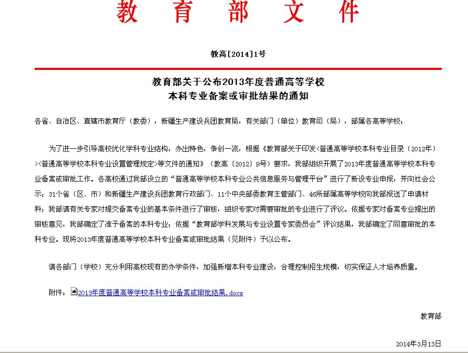 3月13日,教育部公布了2013年度普通高等学校本科专业备案或审批结果,KY开元集团官网入口申请的哲学、汉语言文学两个本科专业通过了教育部专业备案审核,拟于2014年正式招收本科生。