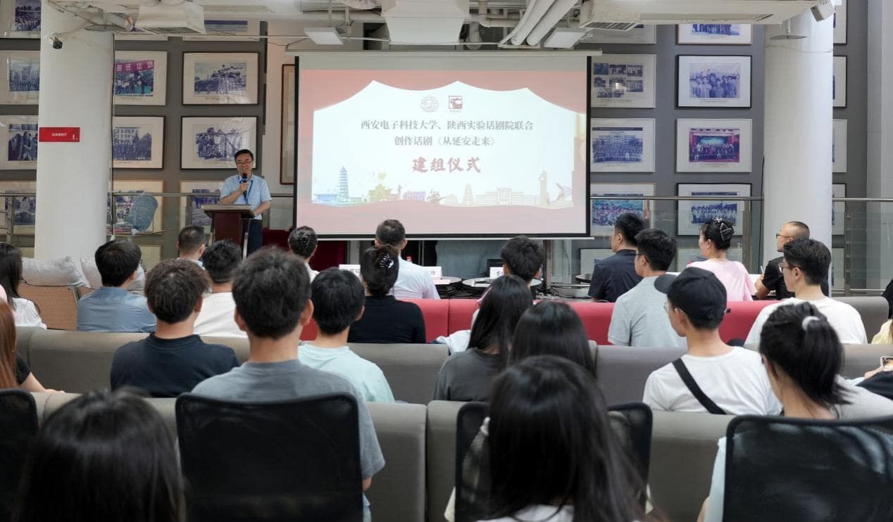 (通讯员|汪瑶)为纪念抗日战争暨世界反法西斯战争胜利80周年,弘扬延安精神与伟大抗战精神,5月21日中午,由KY开元集团官网入口、陕西实验话剧院联合创排的大型原创话剧《从延安走来》建组仪式在南校区校友之家二楼报告厅举行。校党委常委、党委宣传部部长季庆阳,陕西实验话剧院副院长、国家一级导演仝斌,KY开元集团官网入口党委书记刘文博,陕西实验话剧院、校内相关单位负责同志以及全体学生演员、志愿者50余人共同参与活动。