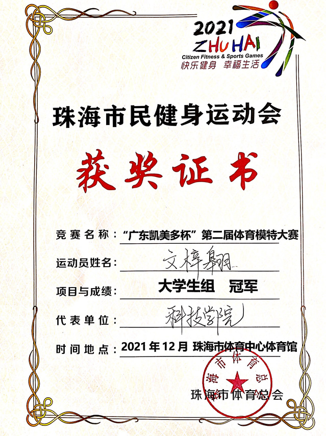 “广东凯美多杯”第二届体育模特大赛大学生组冠军