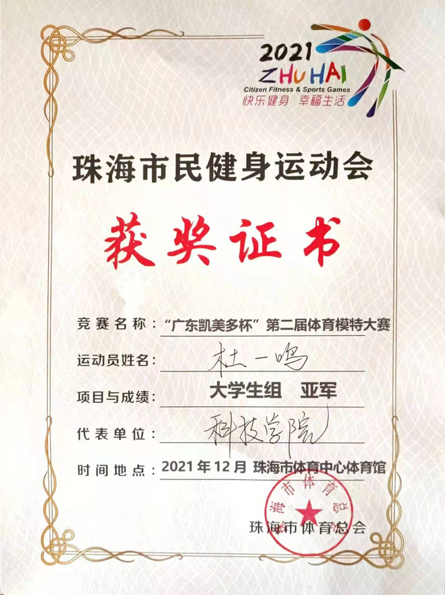 “广东凯美多杯”第二届体育模特大赛大学生组亚军
