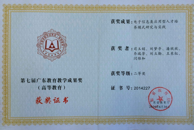 第七届广东省教育教学成果奖(高等教育)二等奖
