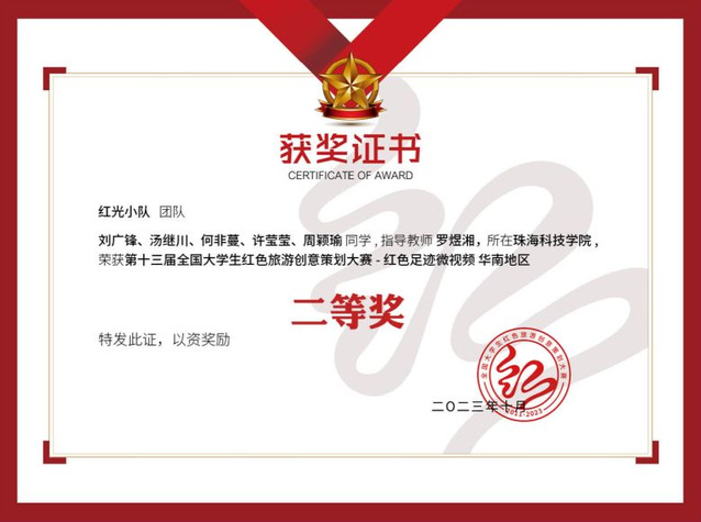 图11:获得第十三届全国大学生红色旅游创意策划大赛华南地区二等奖