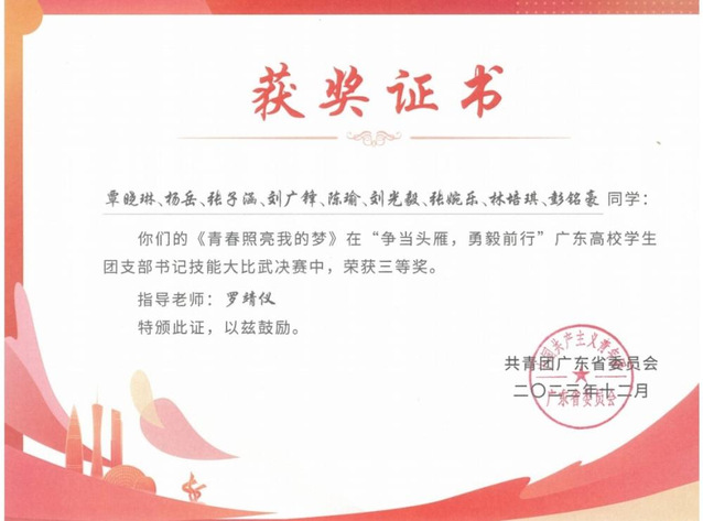 图14:获得广东高校学生团支部书记技能大比武决赛三等奖