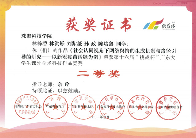 图9:广东省“挑战杯”大学生课外学术科技作品竞赛获奖