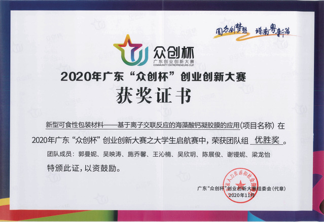 本专业团队在2020年广东“众创杯”创业创新大赛中获得团队组优胜奖
