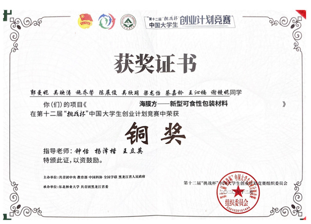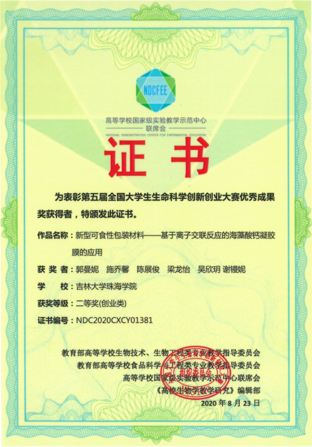 本专业团队在2020年第五届全国大学生生命科学创新创业大赛获得